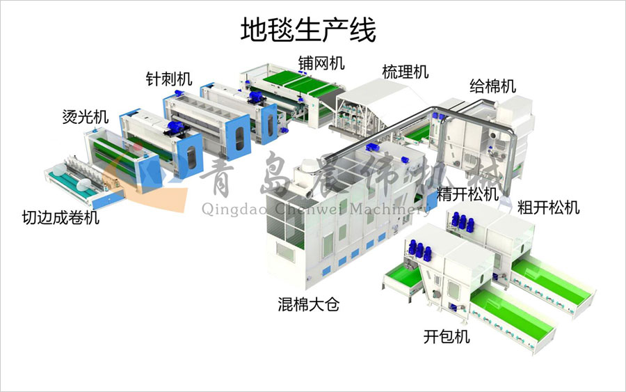 開包機-開松機-振動給棉機-梳理機-鋪網(wǎng)機-針刺機-切邊成卷機